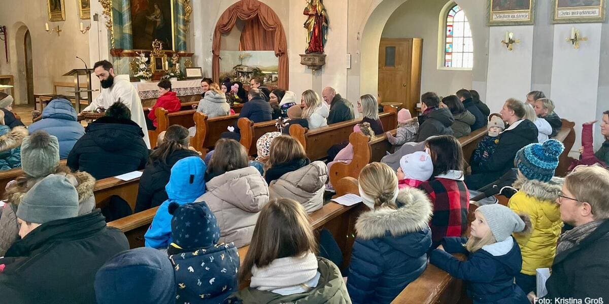 So entstand Schritt für Schritt eine lebendige Szenerie rund um die Weihnachtsgeschichte. Ein besonderer Moment war erreicht, als nach der Vollendung der Geschichte der Christbaum in der Kirche erleuchtet wurde – die Kinderaugen begannen zu strahlen. Mit großer Freude und Spannung waren die jungen Besucher bei der Andacht dabei. Auch im Anschluss nahmen sich viele Familien Zeit, die entstandene Szenerie sowie die große Krippe neben dem Altar zu betrachten. Die Lieder wurden gemeinsam gesungen und von Pastoralreferent Probst angestimmt, was der Andacht eine besonders herzliche und familiäre Atmosphäre verlieh.
