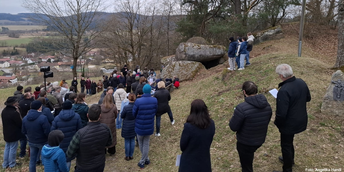 Am vierten Fastensonntagnachmittag versammelten sich die Firmkinder aus der Pfarreiengemeinschaft Wald und Zell, sowie deren Eltern und viele Bittgänger, um im Rahmen des Doppel-Pfarrjubiläums den Kreuzweg zu beten, der sich auf den Weg zur Burg Lobenstein hinauf befindet. Trotz eines wolkenbehangenen Himmels zogen Pfarrer Tinu Nedumbakaran und Diakon Klaus Schülein mit den Firmkindern - betend und singend vom Pfarrhof Zell weg hinauf zum Burgberg, zur ersten Station von insgesamt 14.
