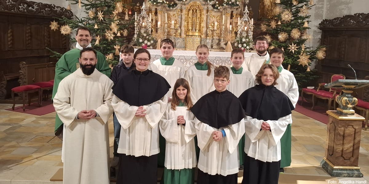 Bei der Vorabendmesse in Martinsneukirchen vergangenen Samstag, konnten zwei neue Ministranten in die Schar der Altardiener aufgenommen werden, aber auch drei „Minis“ wurden verabschiedet. Dekan Ralf Heidenreich, Diakon Klaus Schülein und Pastoralreferent Thomas Probst zelebrierten den Gottesdienst. In Bezug auf das zuvor gehörte Evangelium holte sich Pastoralreferent Probst den Satz Jesu „Folgt mir nach“ hervor und nannte hier die Art Brücke zu den Ministranten. „Der Ruf Jesu hallt durch die Jahrhunderte und der Dienst am Altar, durch die Mädchen und Buben als Ministranten, ist eine Form der Nachfolge Jesu.