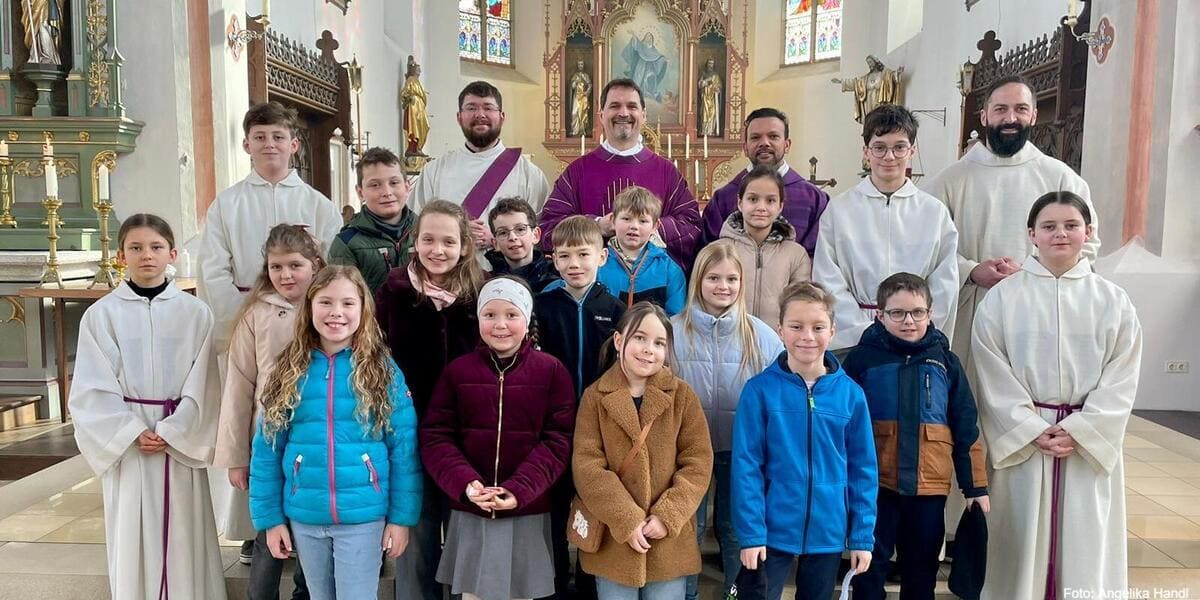 Am dritten Fastensonntag sind in der Pfarrkirche Maria Himmelfahrt in Zell im Rahmen des Gottesdienstes die diesjährigen Kommunionkinder der Gemeinde Zell vorgestellt worden. Die Erstkommunion steht heuer unter dem Motto „Ihr seid meine Freunde“. Den Vorstellungs-Gottesdienst feierten Dekan Ralf Heidenreich, Pfarrer Tinu Nedumbakaran, Diakon Klaus Schülein und Pastoralreferent Thomas Probst, der auch federführend für den Kommunionunterricht verantwortlich ist. Die musikalische Umrahmung übernahm Thomas Schön an der Orgel, der das Lied „Beginne du all meine Tage“ zur Eröffnung anstimmte.