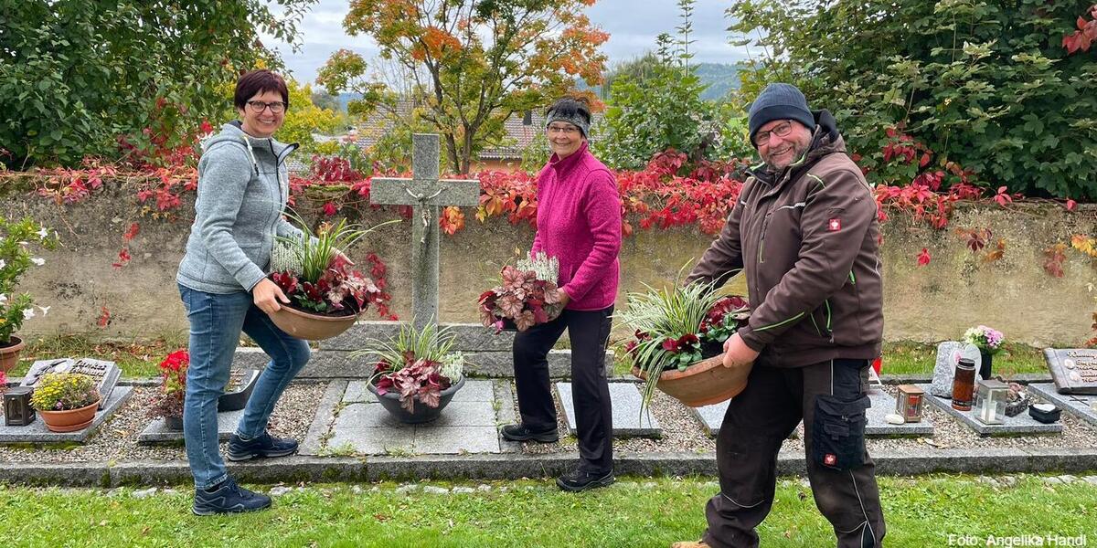 Einen herbstlichen Hingucker haben sich die Gartenfreunde des OGV Zell überlegt. Mit dem Erlös aus dem Kräuterbuschen-Verkauf vom 15.August, sollten das Priestergrab und die Kreuze an den Urnengräbern am Friedhof in Zell verschönert werden. Gemeinsam wurden Schalen mit herbst- und winterlichen Pflanzen vorbereitet und zieren nun seit dem Wochenende die besagten Plätze.
